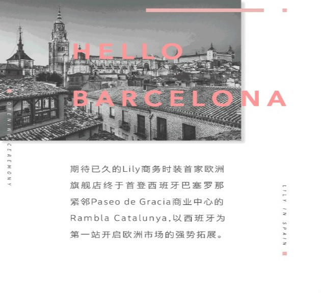 期待已久的Lily商務(wù)時(shí)裝首家歐洲旗艦店在西班牙巴塞羅那開(kāi)張。